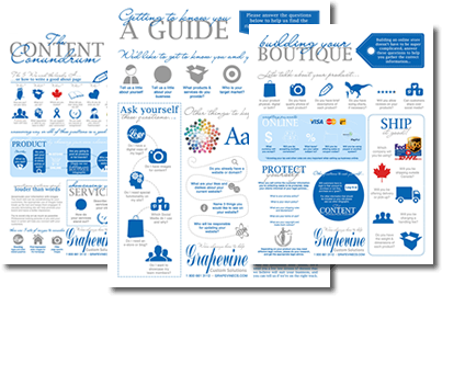 We know how hard it is to sit down and figure out what you need in a website, so we’ve created some handy infographics that will help you gather your thoughts and content. It will also help us gear the design towards your target market and convey the correct feeling to your client with the design.
